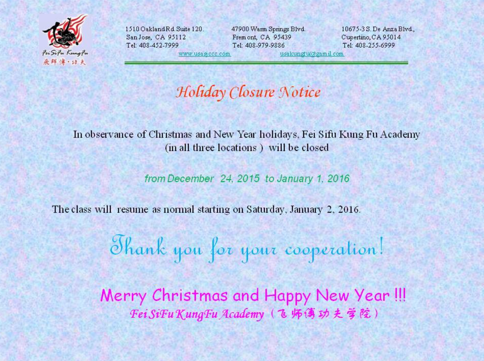 Christmas breaks schedule